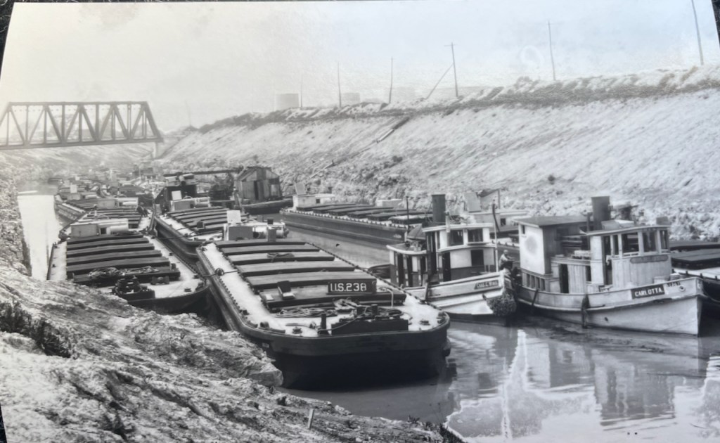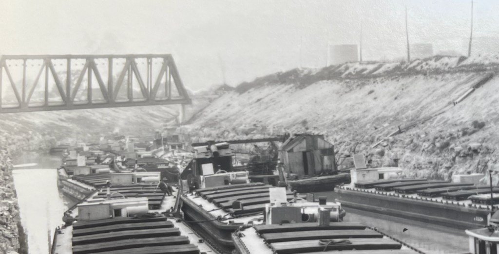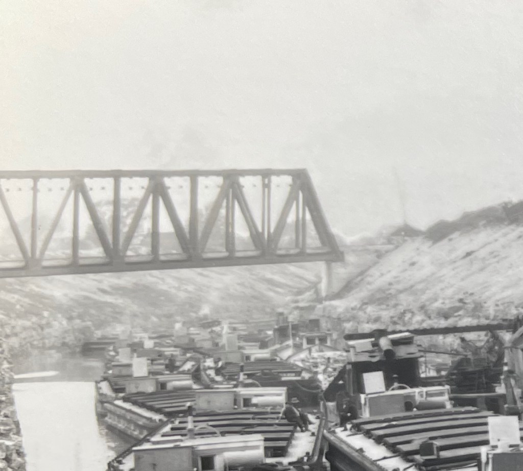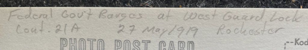 Another request: when I took this photo, which I did for a specific reason I’ve since forgotten, I neglected to reproduce the identification info on the reverse of this postcard reproduction. My question: Are we looking at Lock 28B in Newark under construction and photo taken from the rail bridge just to the west of the lock?