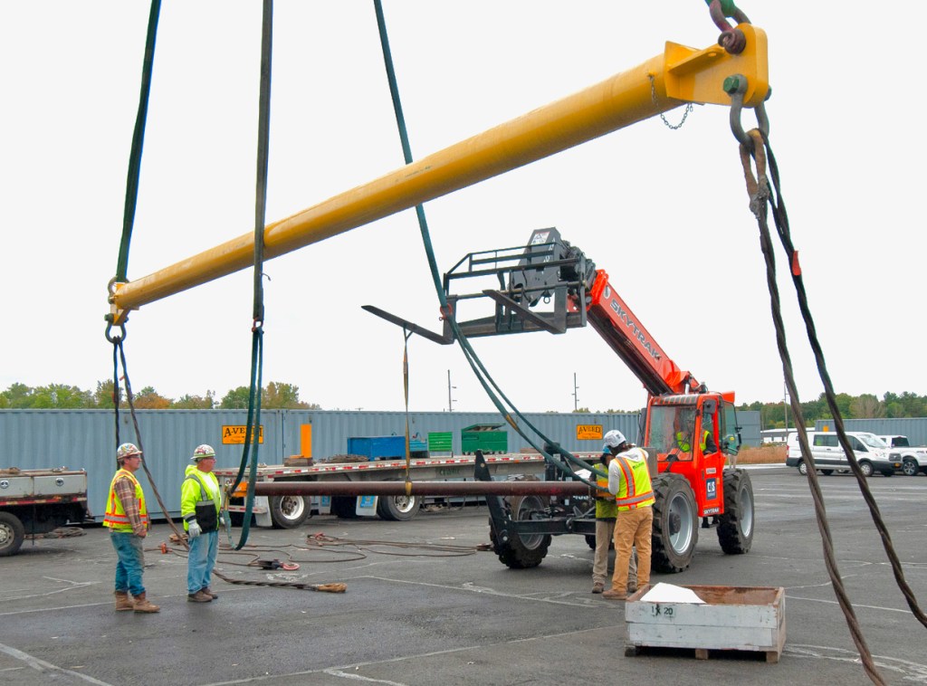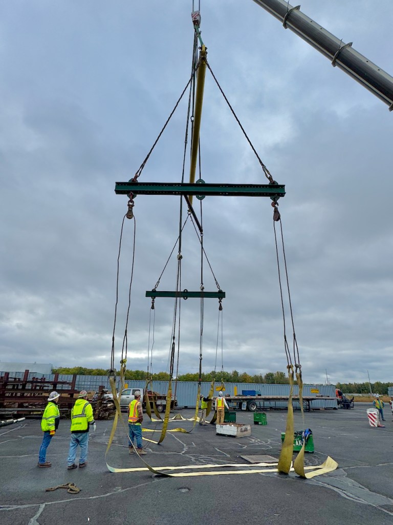 The talented support and crew from C & S Engineering and Clark Rigging did the actual lift. The day started as they completed the assembly of lifting gear, spreader bars and straps, a task begun the day before.