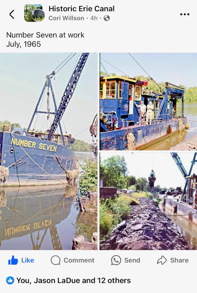 New York DPW shops in Syracuse did build a Number Seven, completed in 1931, per the entry below from the 1933 Merchant Vessels of the US (MVUS) list. By the way, the 210 is gross tonnage, a volume measurement. It was 110′ x 25′.
