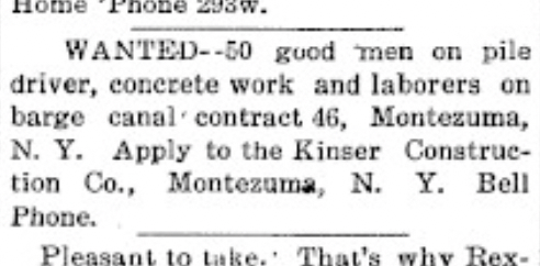 T. W. Kinser did provide workers for various Barge Canal projects, as evidenced by this early 20th century court case.