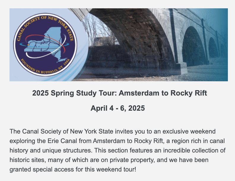 - Walking Tours & Bus Tour – Guided explorations of key Erie Canal structures