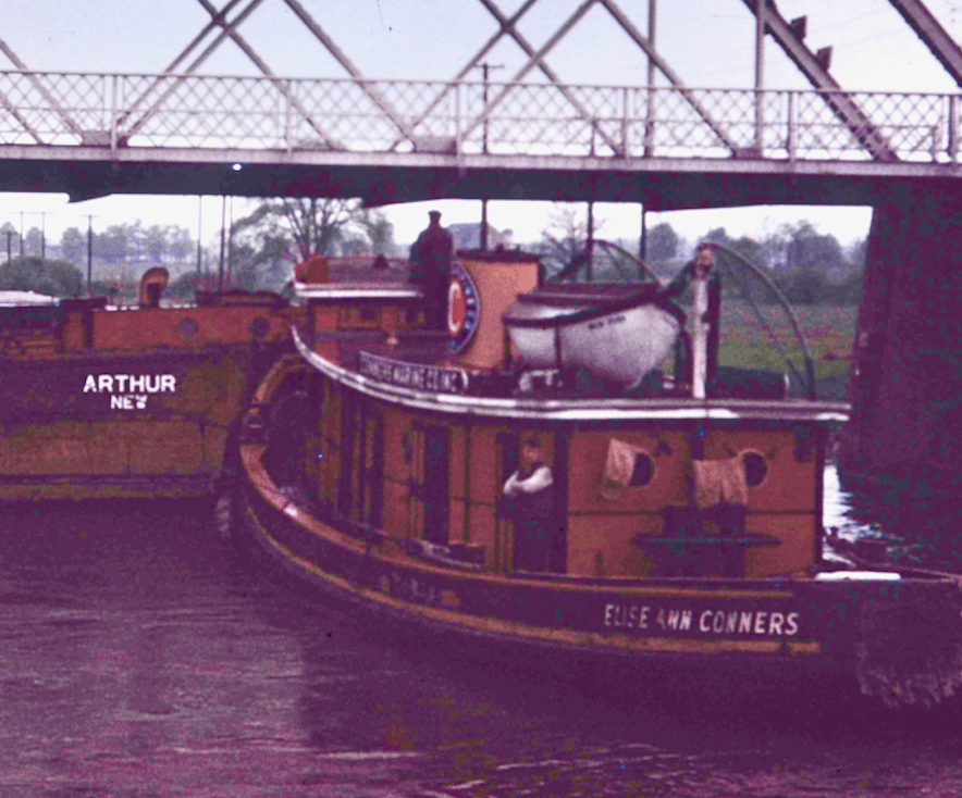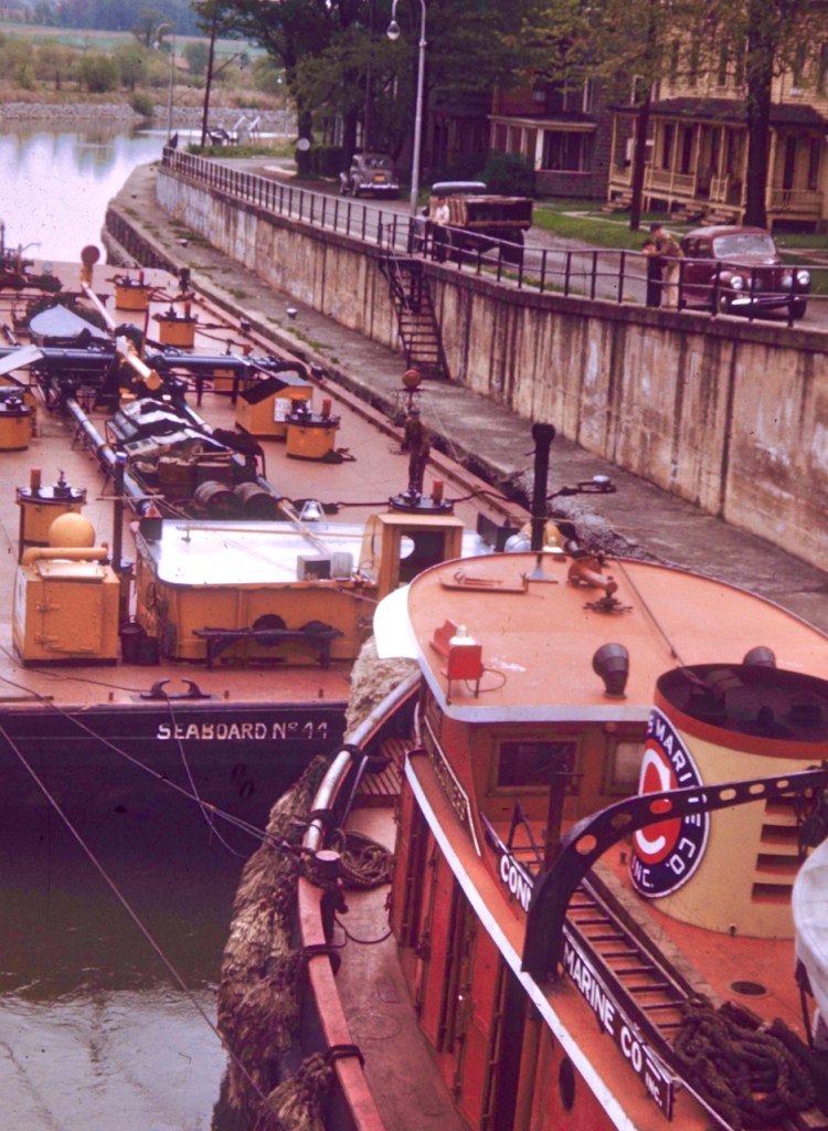 Since I’m doing shots in the dark in this post, might this be Whitehall, a canal port I admit I’m not that familiar with? Is the nearer car a 1938 Willys? Is that the 1942 Oyster Bay-built Anna L. Conners made up to Seaboard No. 11?