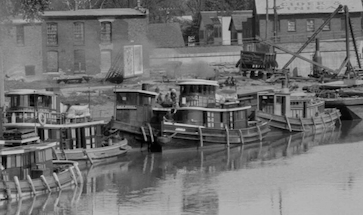 If I had access here to the original glass plate negatives, I could read names everywhere here and see sharper details, but as it is, I can guess the names of only the first two tugboats: Veronica 1 and Comstock.