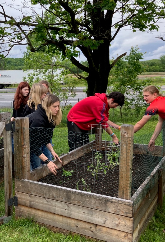 High school students volunteering to plant tomatoes and herbs at the Heritage Park alongside the NYS Thruway is exciting for many reasons: community spirit, ongoing hands-on learning, beautification of the park . . . I could go on.