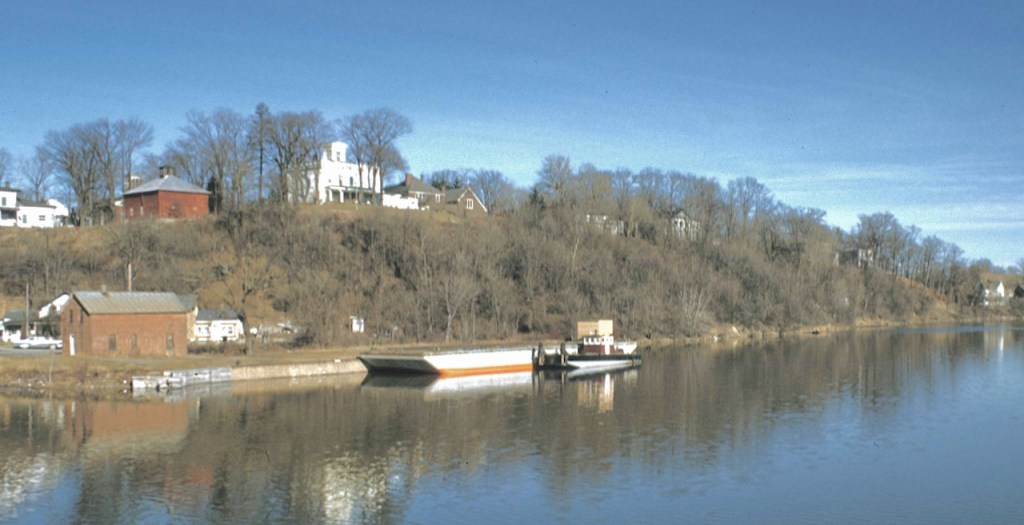 The location here looks like Crescent NY just east of the Route 9 bridge. You’ll correct me if I’m wrong. What intrigues me about the image is the small tugboat alongside the barge. Is that an Ingalls Sea Mule?