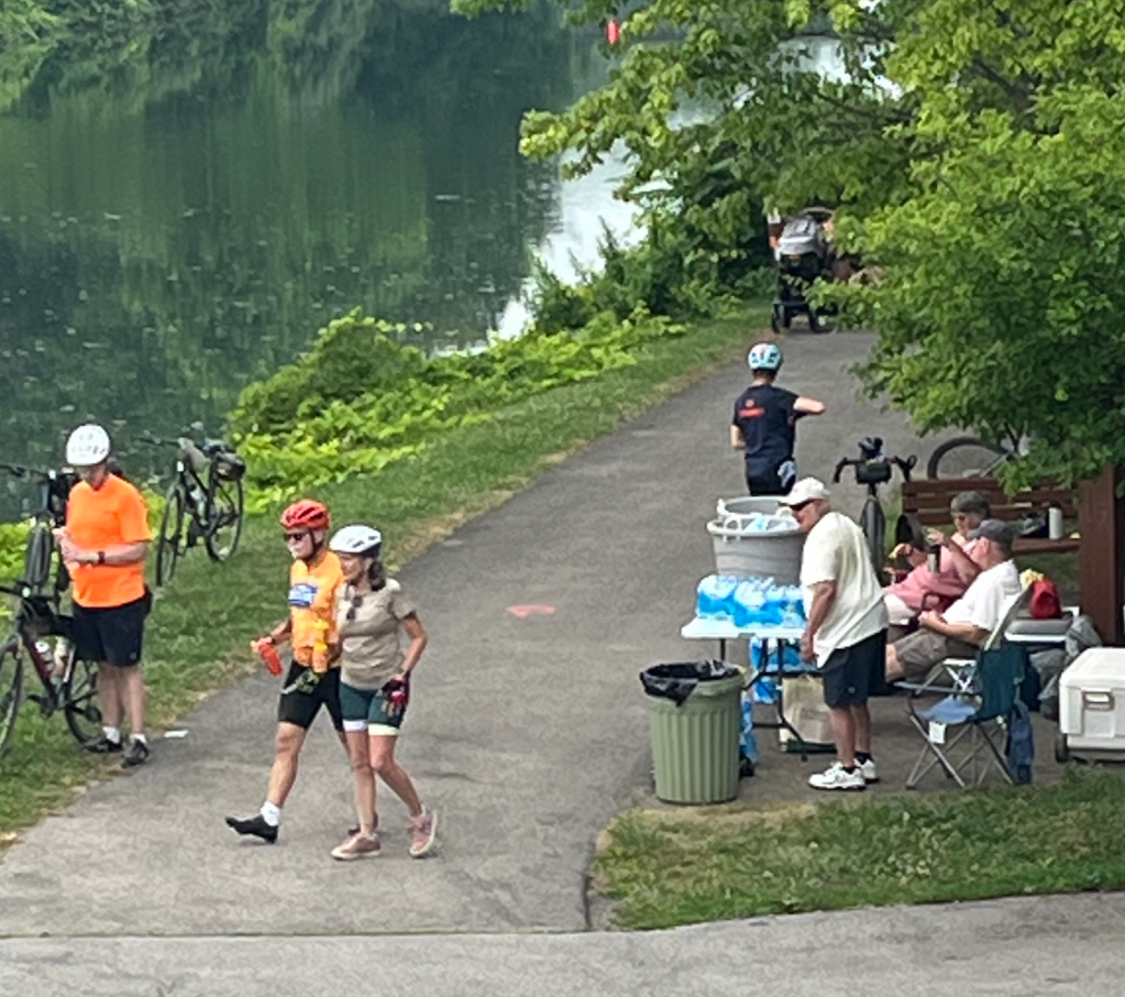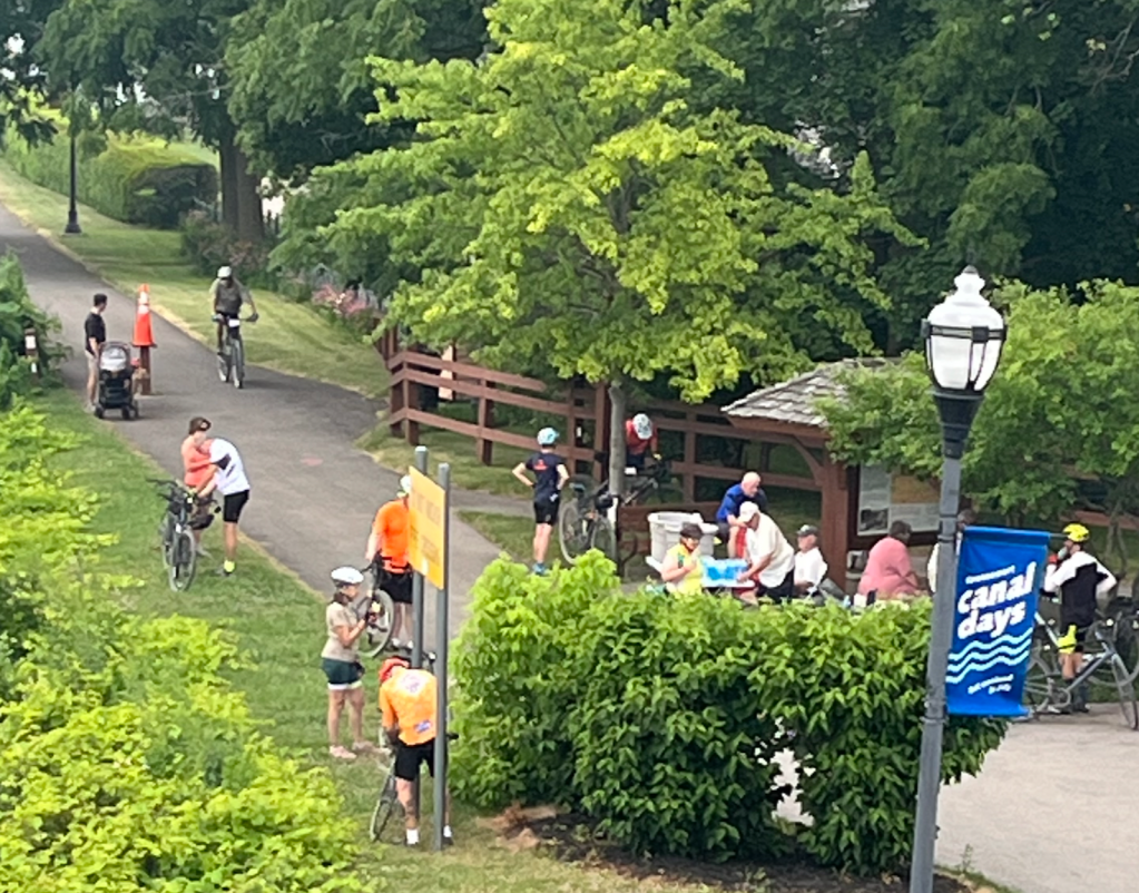 Many thanks to Dispatches correspondent Ray Kuntz for taking these photos in Spencerport yesterday as Cycle the Erie riders stopped for water, lunch, and a rest.