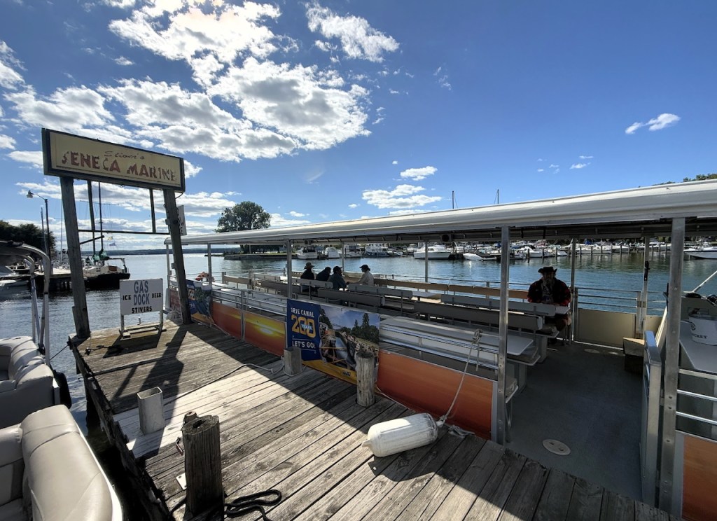 the seating area covered over. At this north end of the lake, we can see the city of Geneva across the way as we cruise south along the west side of the lake. Seneca Lake, along with many other lakes in the central region of the state are referred to as the Finger