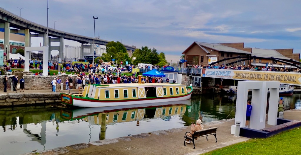Many thanks to Bruce Schwendy for sending along these photos from Canalside in Buffalo this morning. What comes to mind are the words from Stone’s Narrative of the Festivities … written 200 years ago.