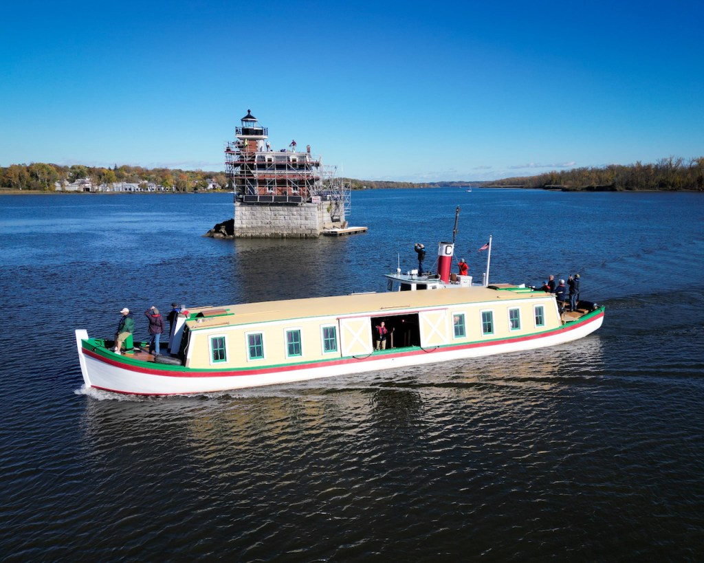 Kevin Oldenburg, drone photographer extraordinaire and more, captured some of these photos as the flotilla southbound, here passing the Hudson-Athens Light.