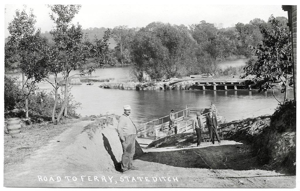 As is true for so many images I post here, images that show faces clearly enough to be identifiable, I just wish I knew more detail, the people here, and the relationships between them, the photographer, the camera, the occasion, the date, and I could go on. These are the ancestors of people somewhere, maybe even within a few miles radius of this very location. I’d love it if someone wrote in to say something like this: “the man in the foreground to the left is my great-grandfather, he was 56 years old at the time, he worked on the ferry as __, the two men to the right and not on the boat did not live locally but were there to __, the photographer’s name was __,” and I could go on again.