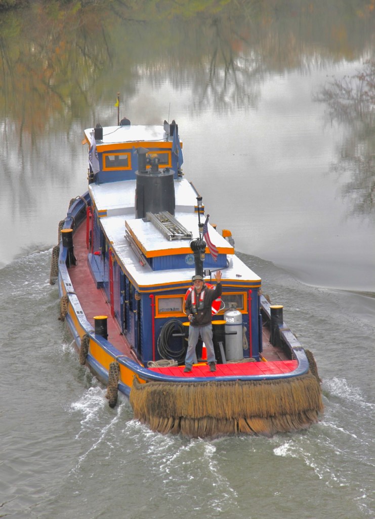 Behold a 2015 photo of a cherished tugboat, moving itself into lock E-14 of the NYS canal, and