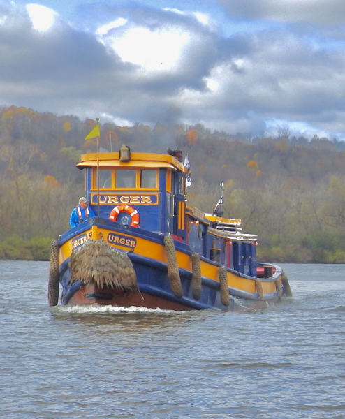 A friend took this photo in Port Gibson NY in October 2014, and–yes–that’s me standing on the stern, and