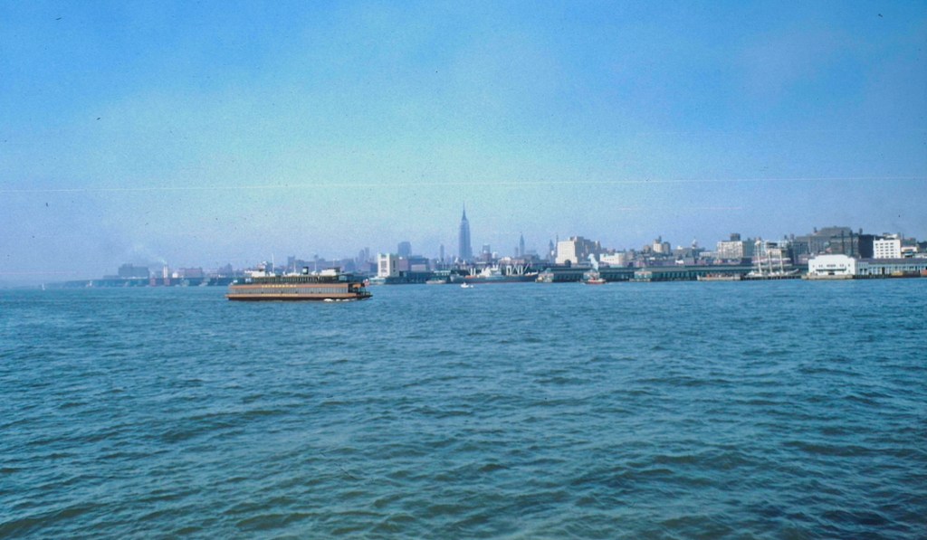 1. That’s Manhattan. Note the Empire State Building standing alone, the Chrysler Building off to its right. Anyone guess the ferry left of center or the three-master to the right?