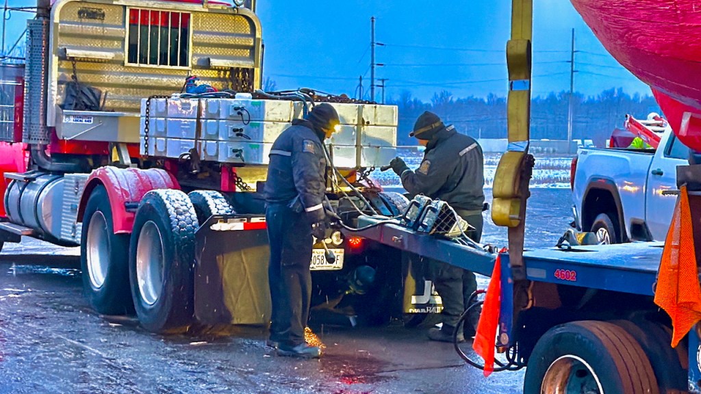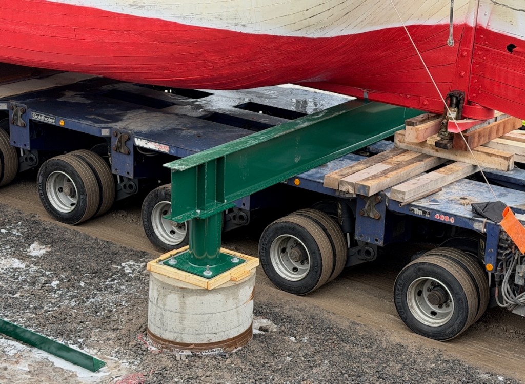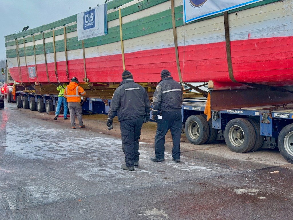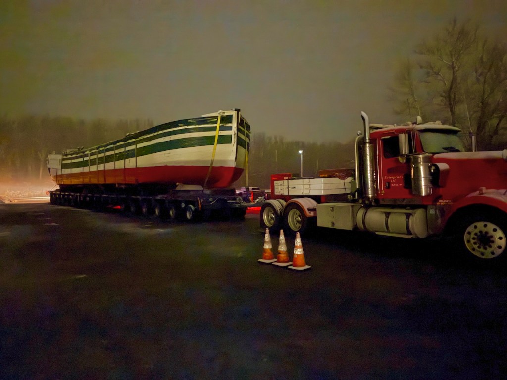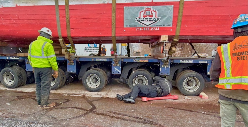 The magic of using the trailer’s hydraulics to transfer Lois onto the cradle began by 13:05.