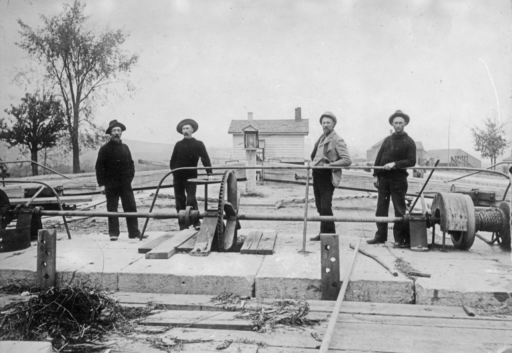 Lock 60 is in Macedon, this image circa 1895, and I can only hope that if local volunteers greet and brief us on this tour, they’d be able to tell us about these folks and their enterprise. Here from the Macedon Historical Society are more photos showing canal activity in this area of Wayne.