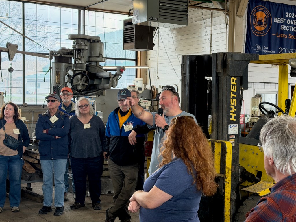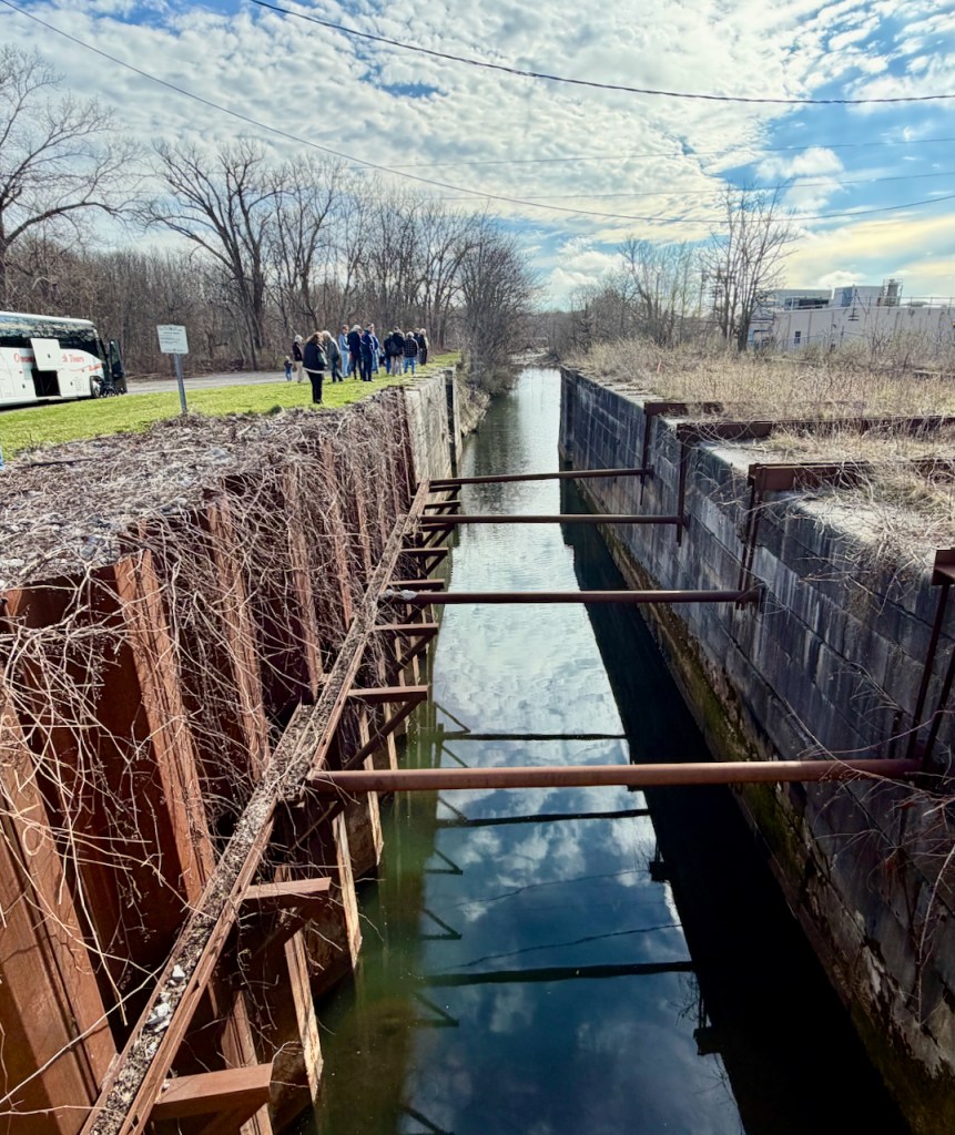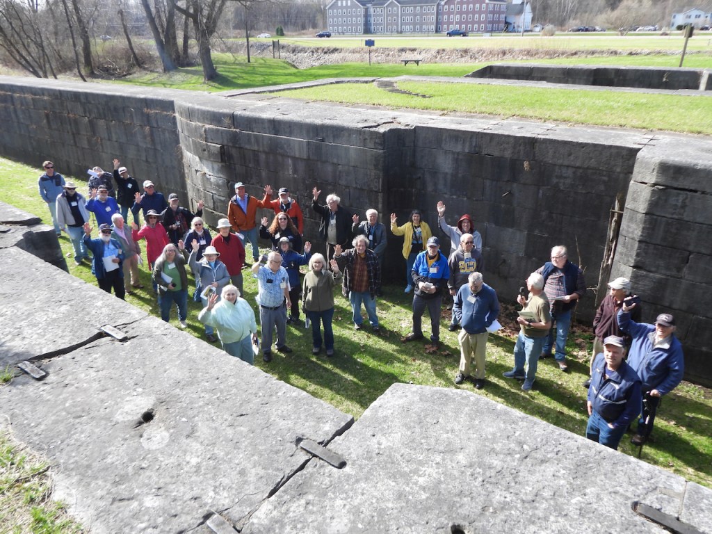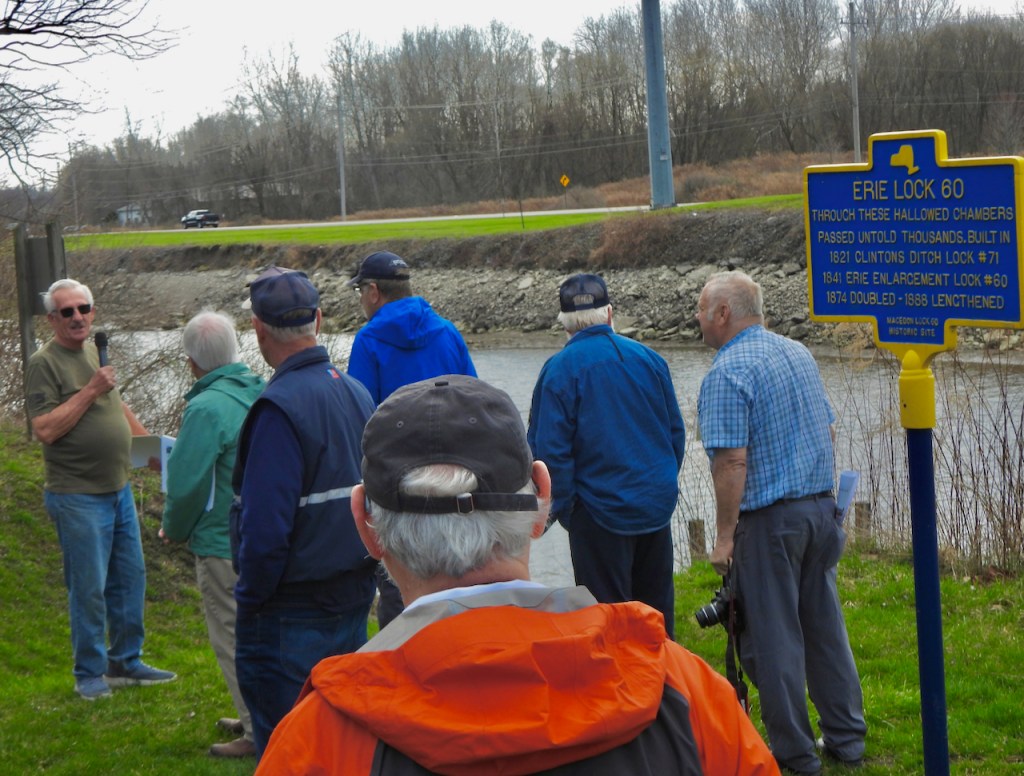 Approximately 50 folks from five US states and Ontario trekked and bussed around Wayne County last Friday and Saturday to see remnants of Erie Canal infrastructure. Wayne County is home to 35 miles of contemporary Canal and six active locks, more than any other county in NYS. Much can be seen if you get off the beaten path, but there are a number of places, especially along Route 31 where you can see parts of the original Canal even though you might not recognize it as such.