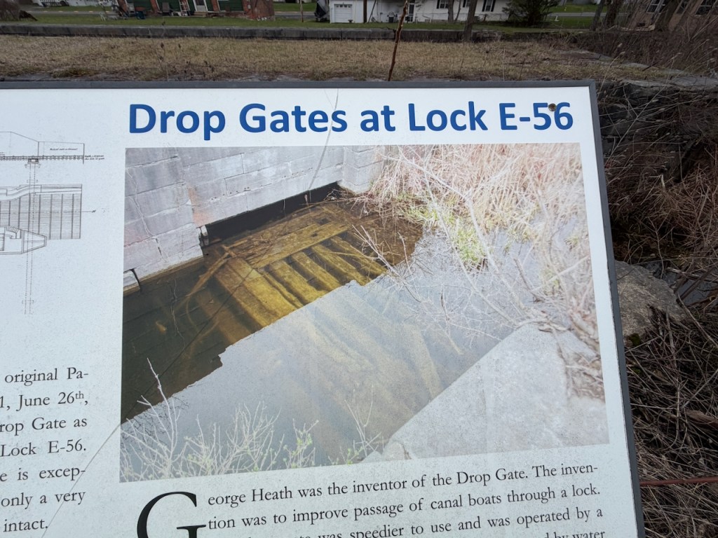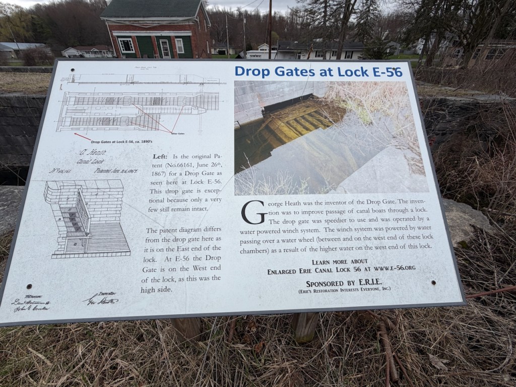 Many thanks to Ted Olsen for these images. When I hear “canal lock,” I think of miter gates, which some people attribute to Leonardo da Vinci, as here. The term comes from the fact that they are mitered. The active Barge Canal uses miter gates at all the locks except one. Know which? Answer follows.
